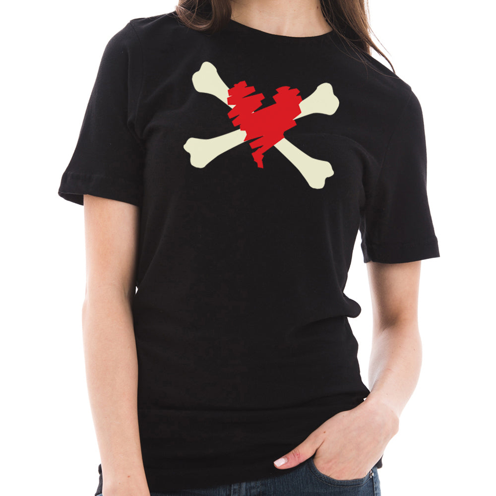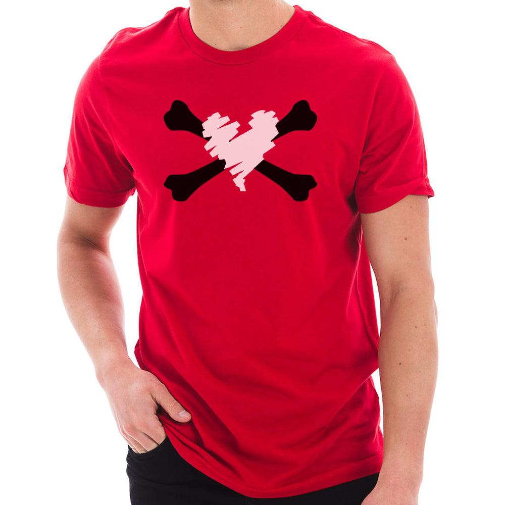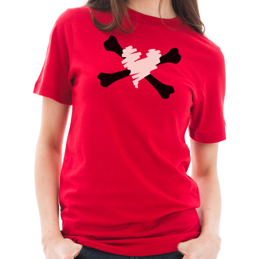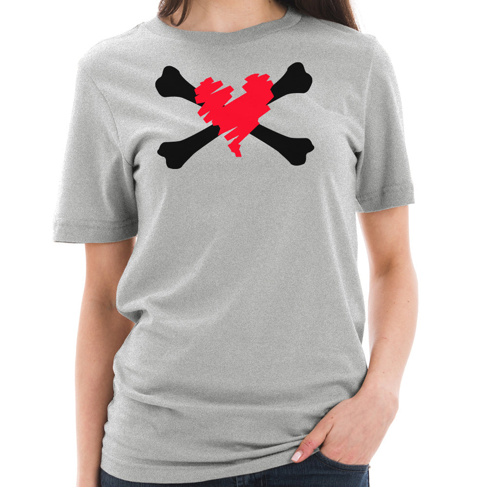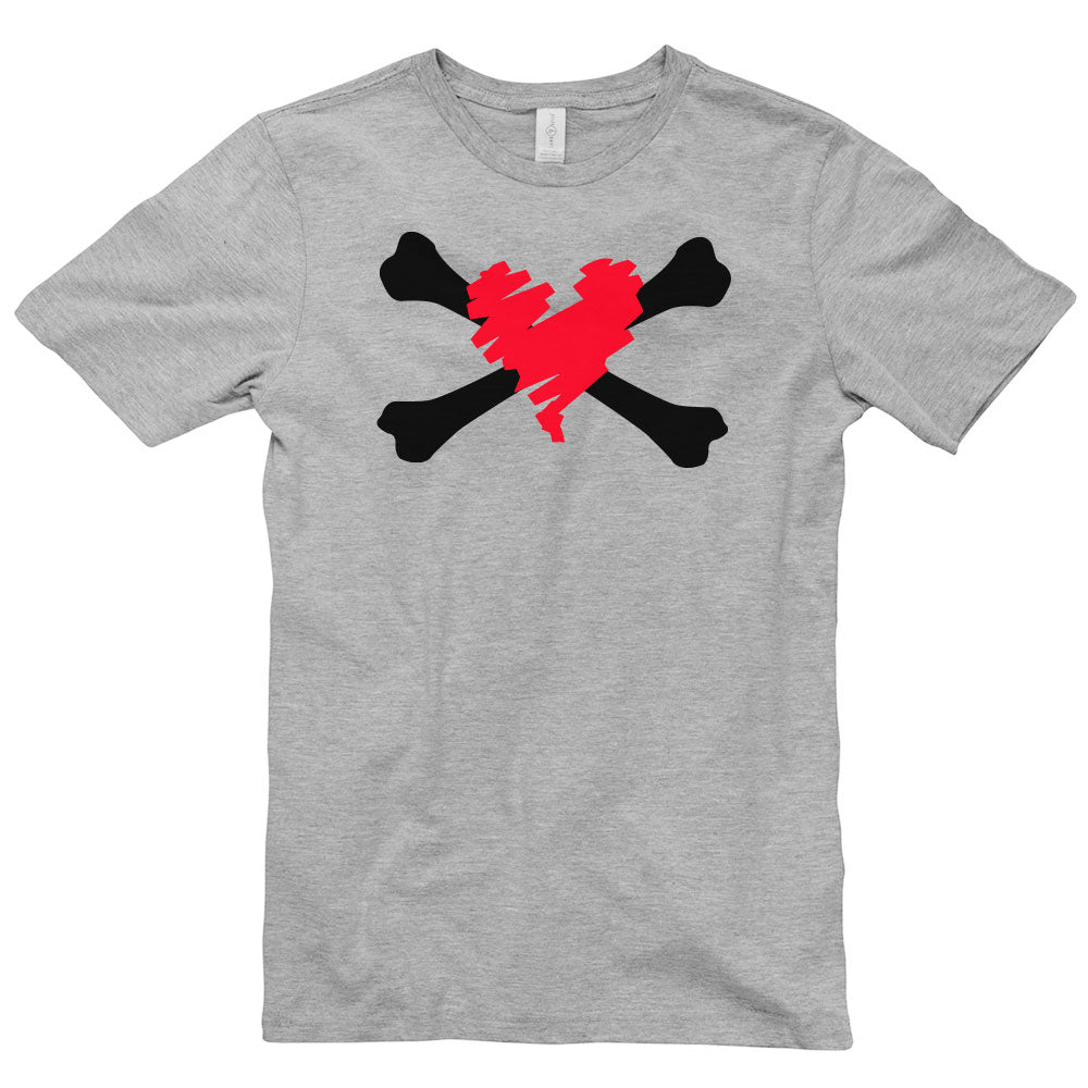 Bones and Scribbled Heart Graphic Design Short Sleeve Cotton Jersey T-Shirt