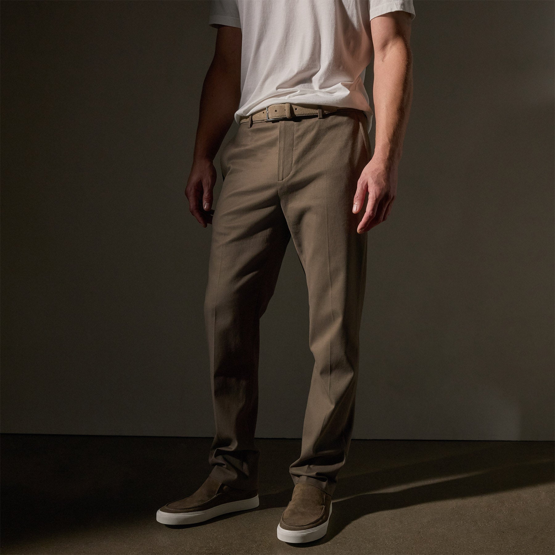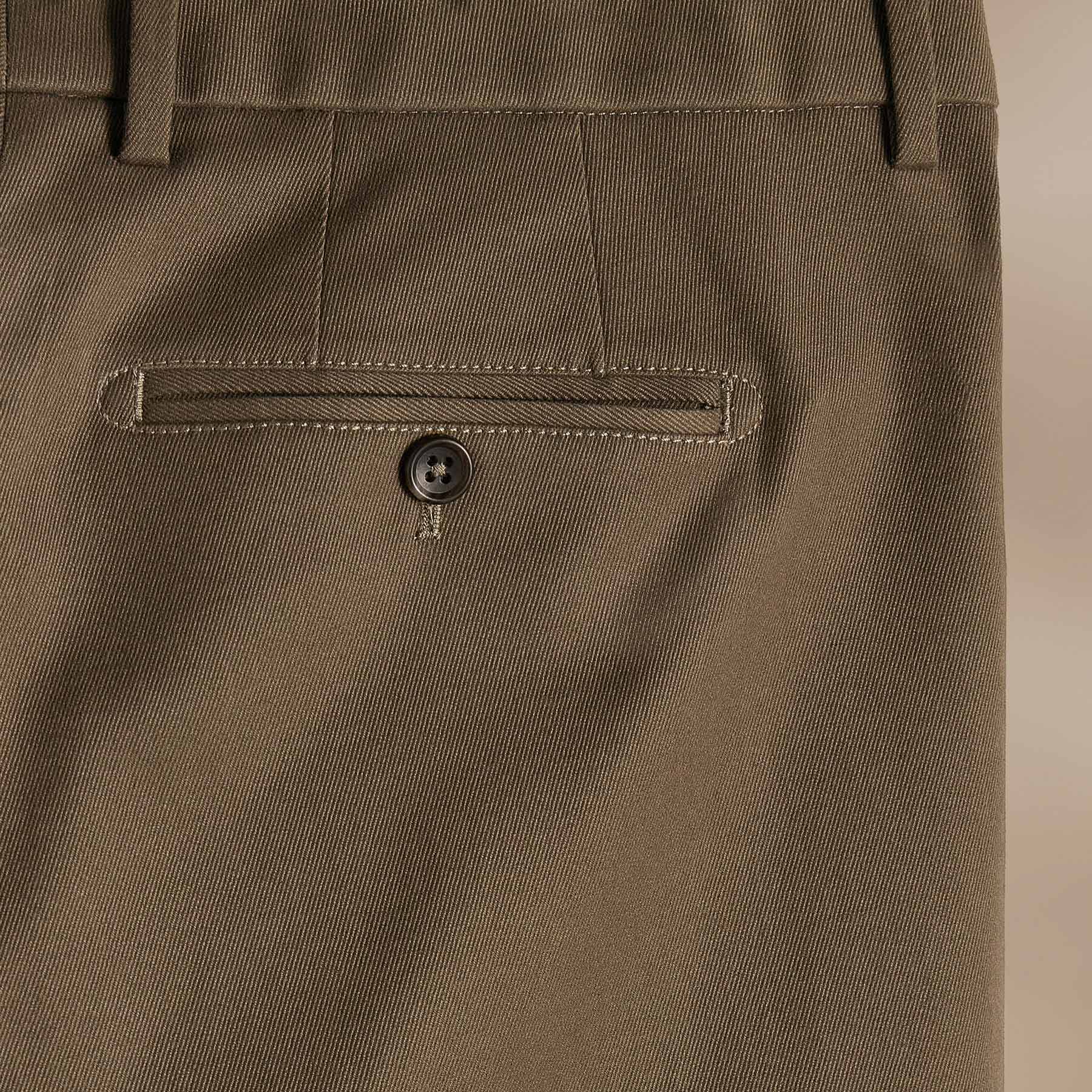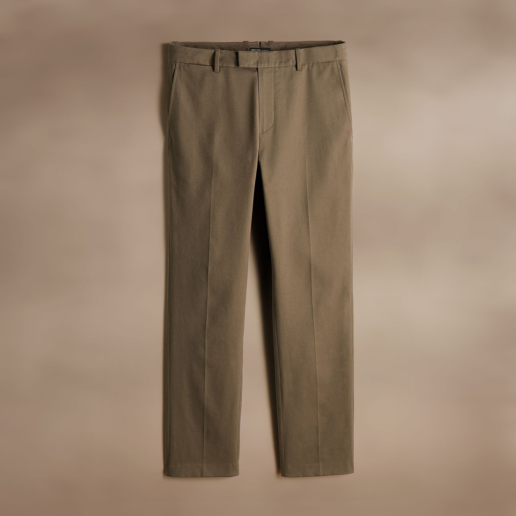 Our Cotton Cashmere Twill Trouser is made in Italian cotton cashmere blend fabric. A touch of cashmere gives a soft handfeel yet elevated look. Style details include traditional trouser construction with notch waistband, functional fly, slash front pockets, back pockets clean hem. Slim trouser fit.