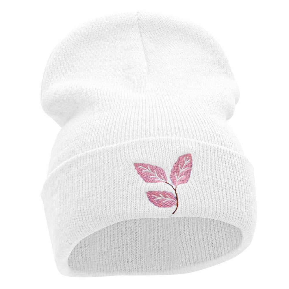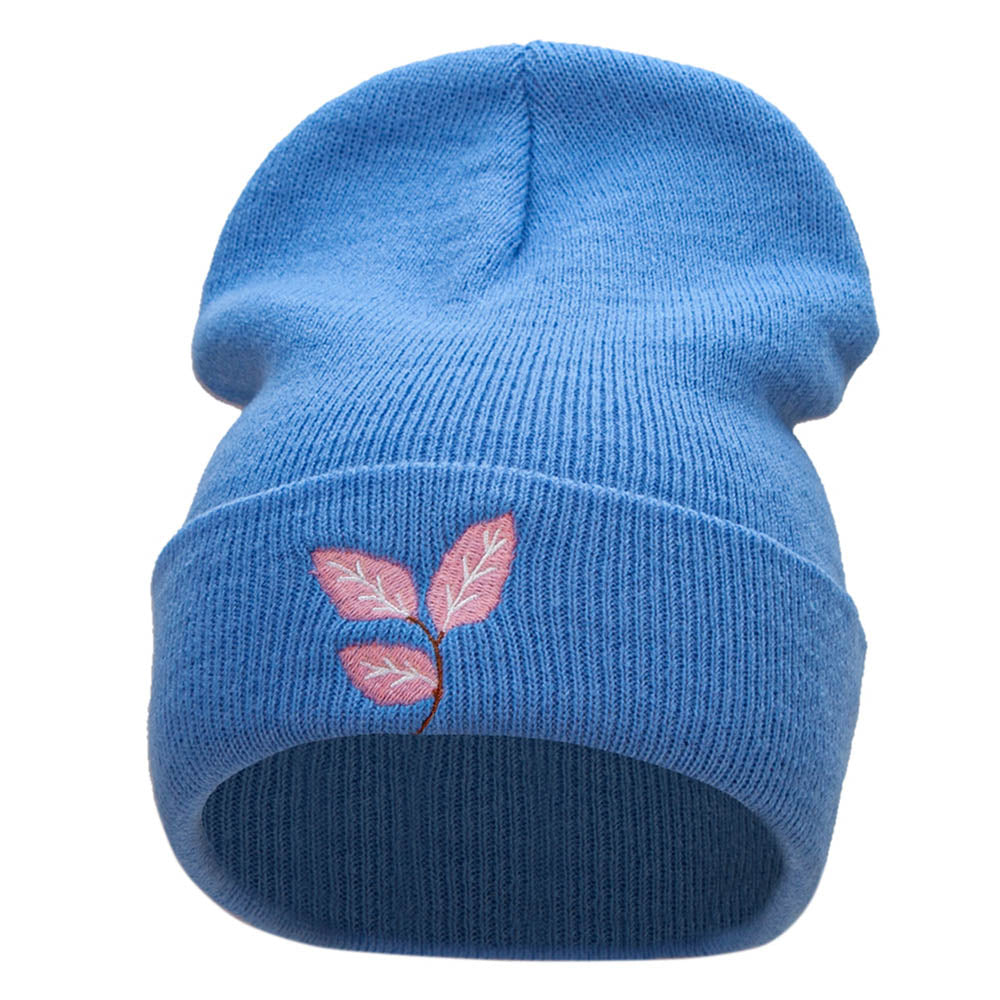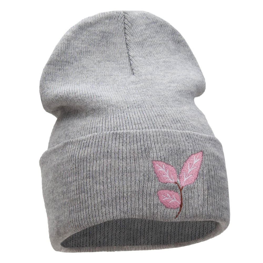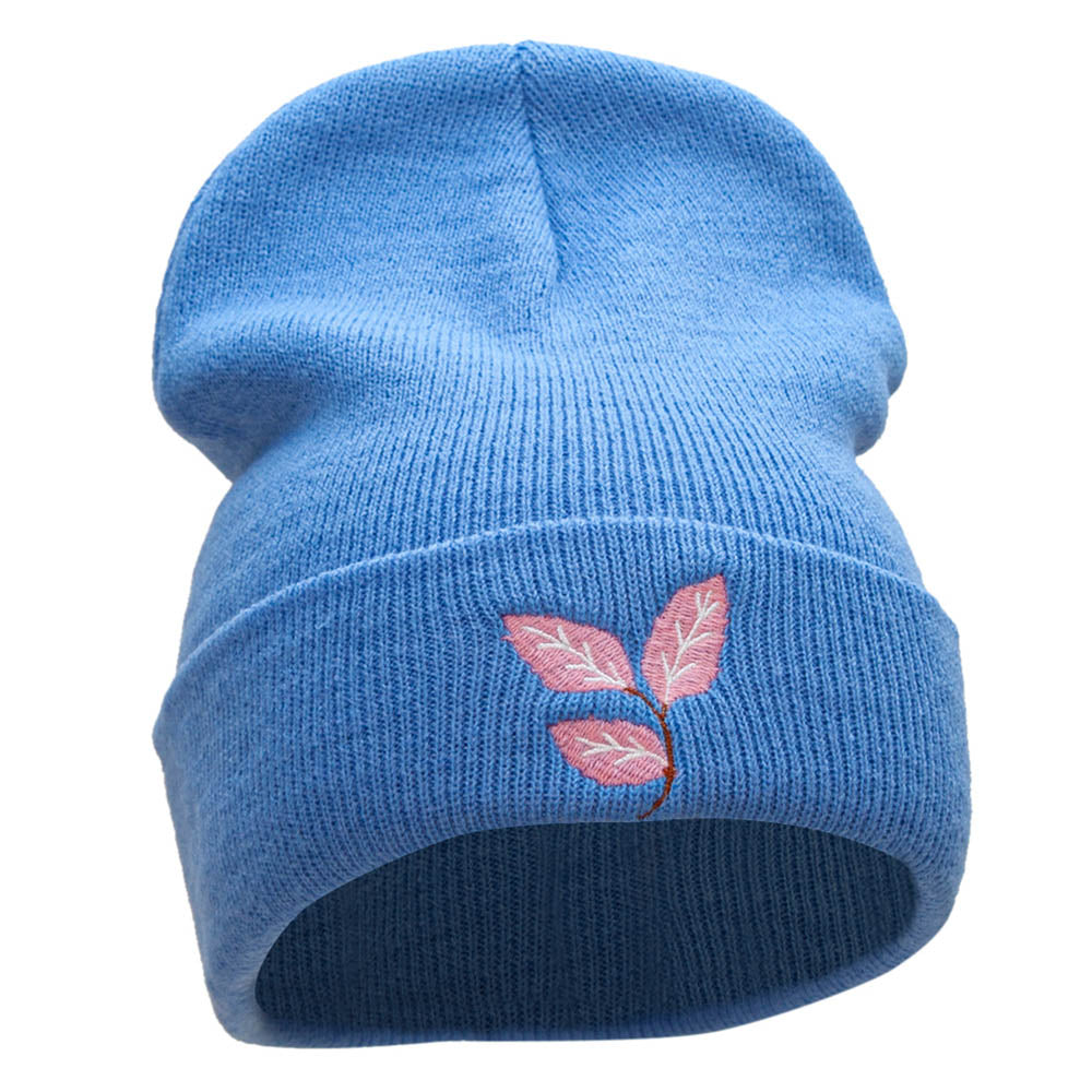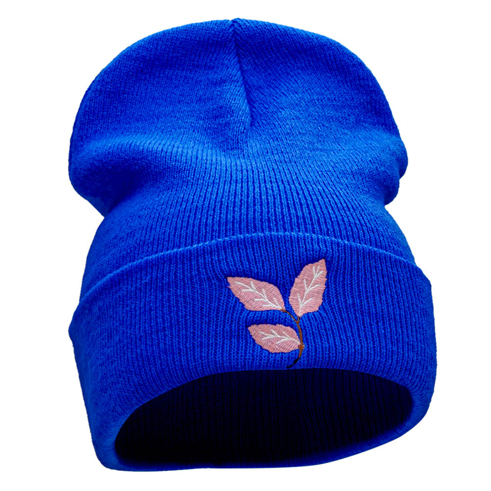 Fall Leaf Embroidered 12 Inch Long Knitted Beanie
