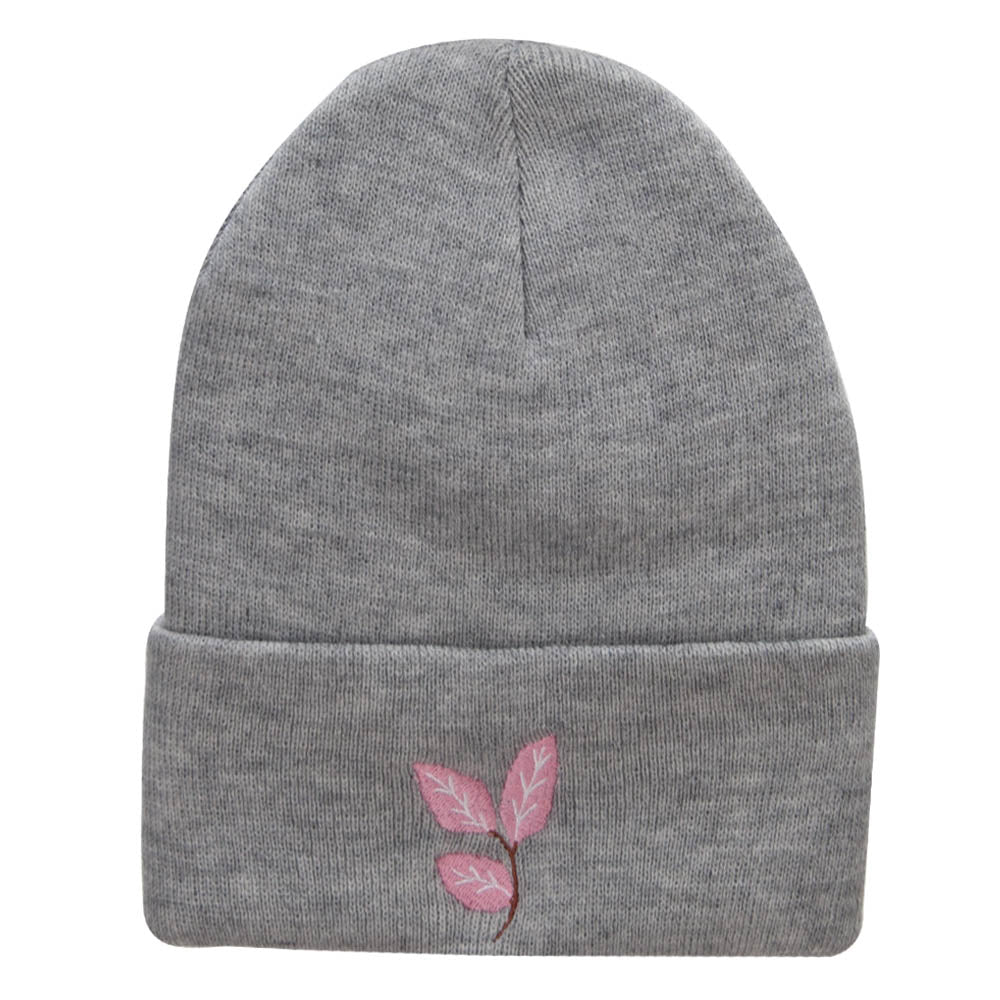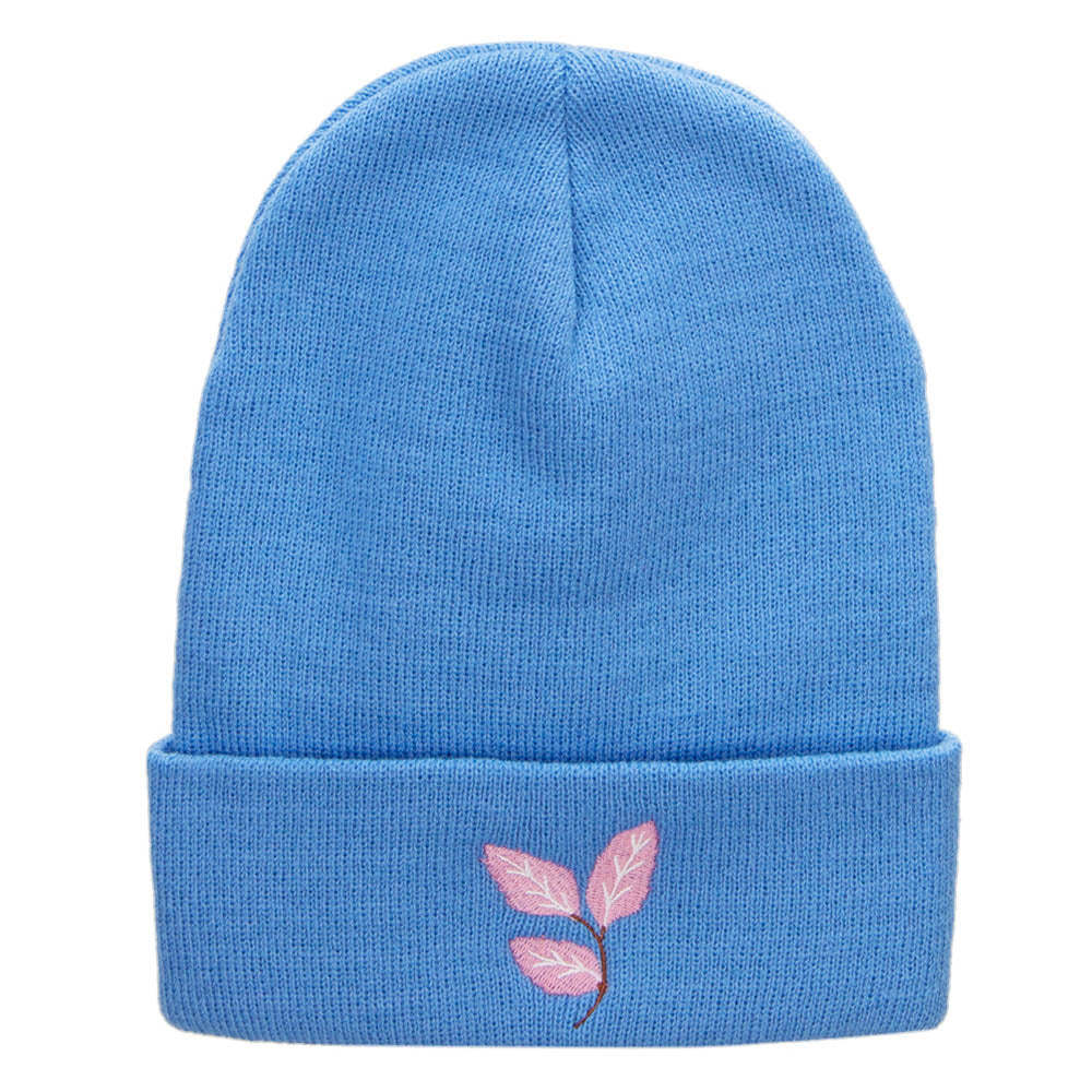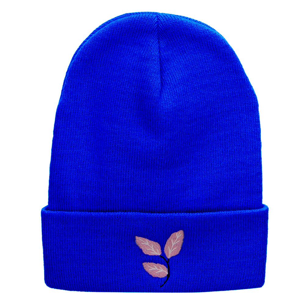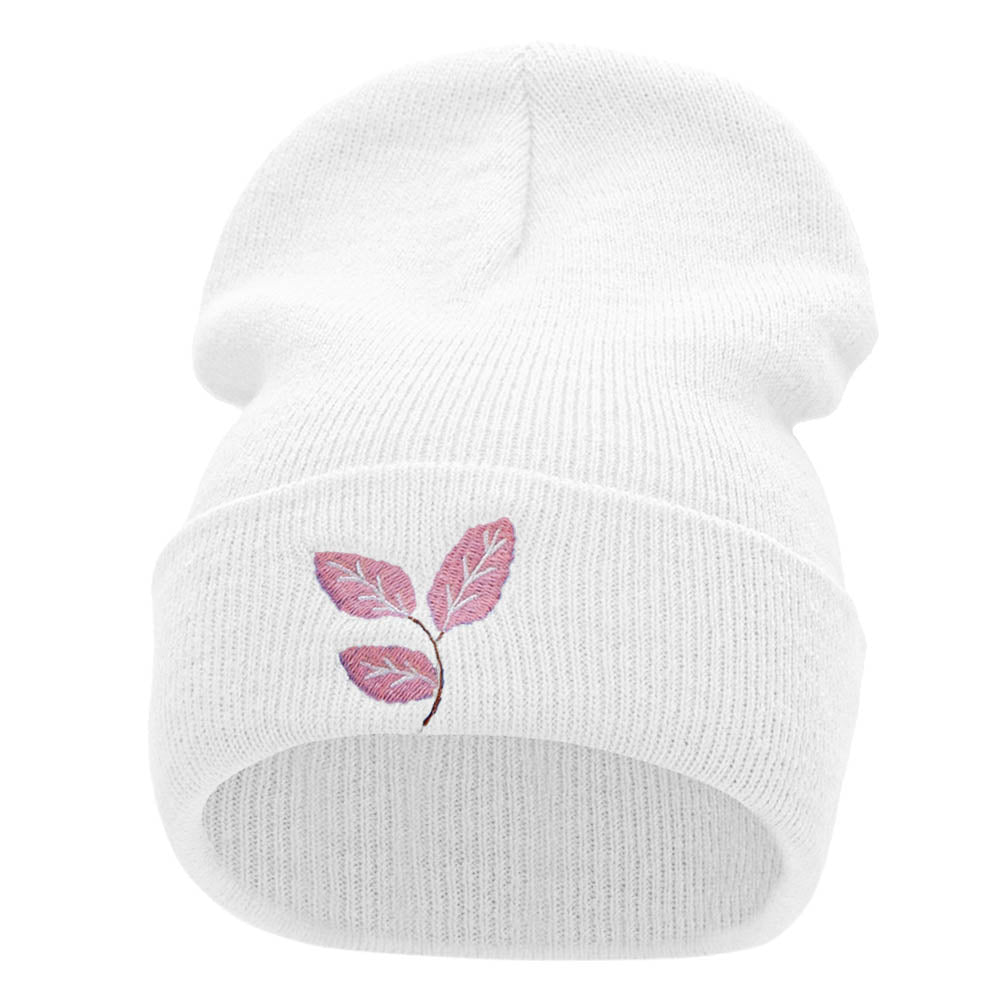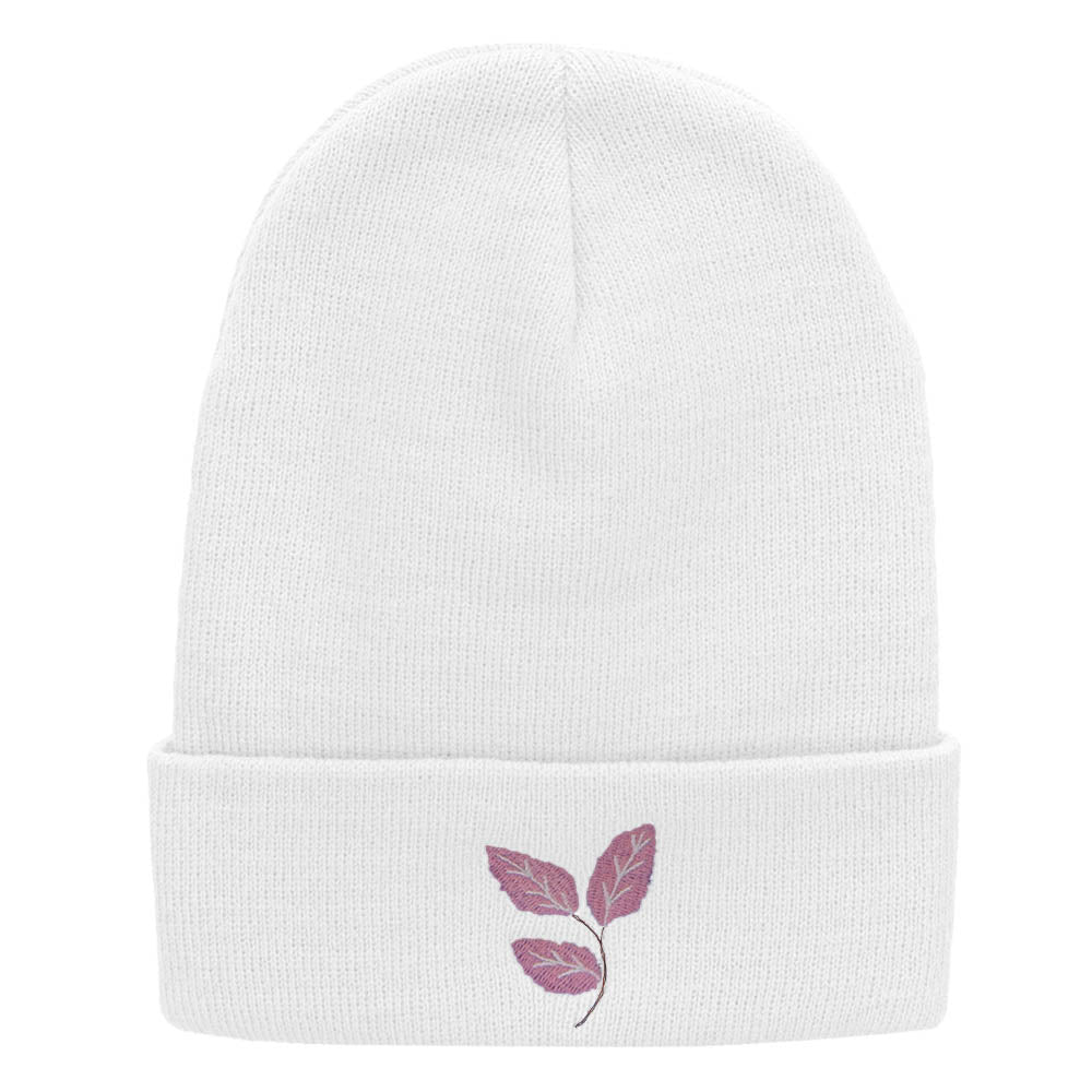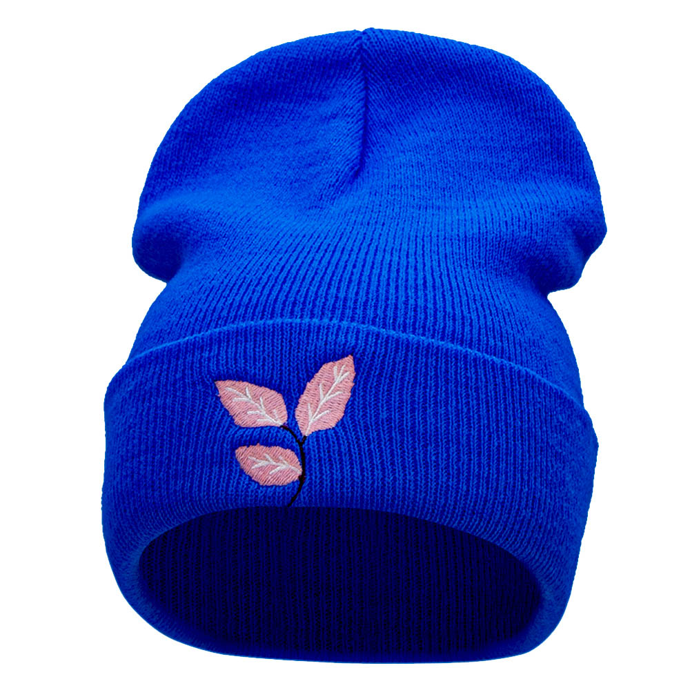 Fall Leaf Embroidered 12 Inch Long Knitted Beanie
