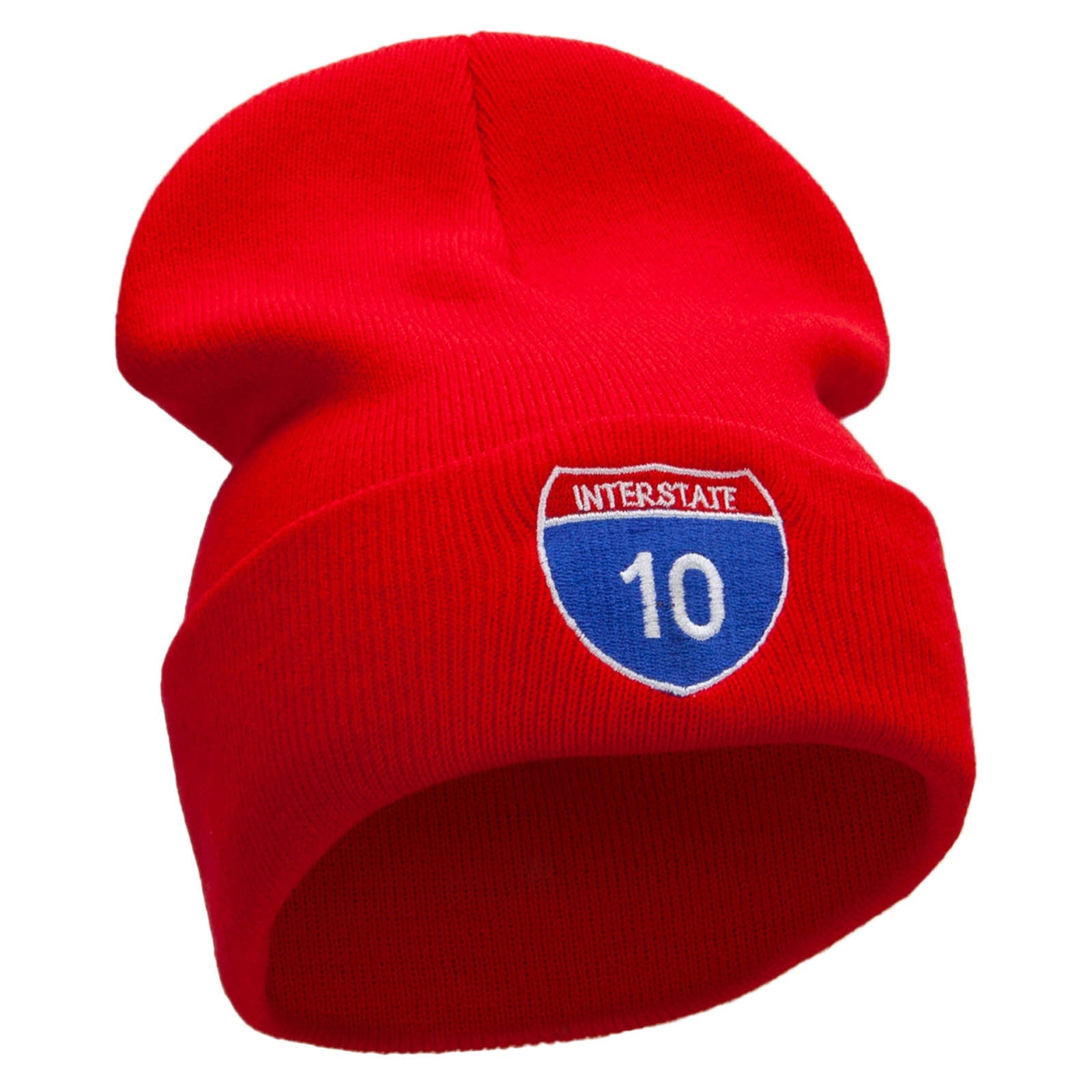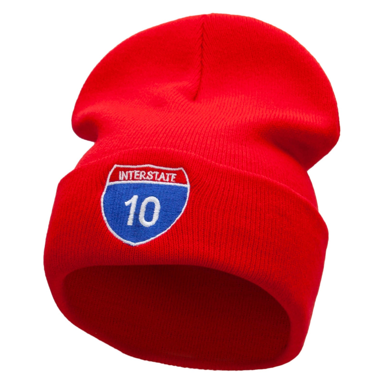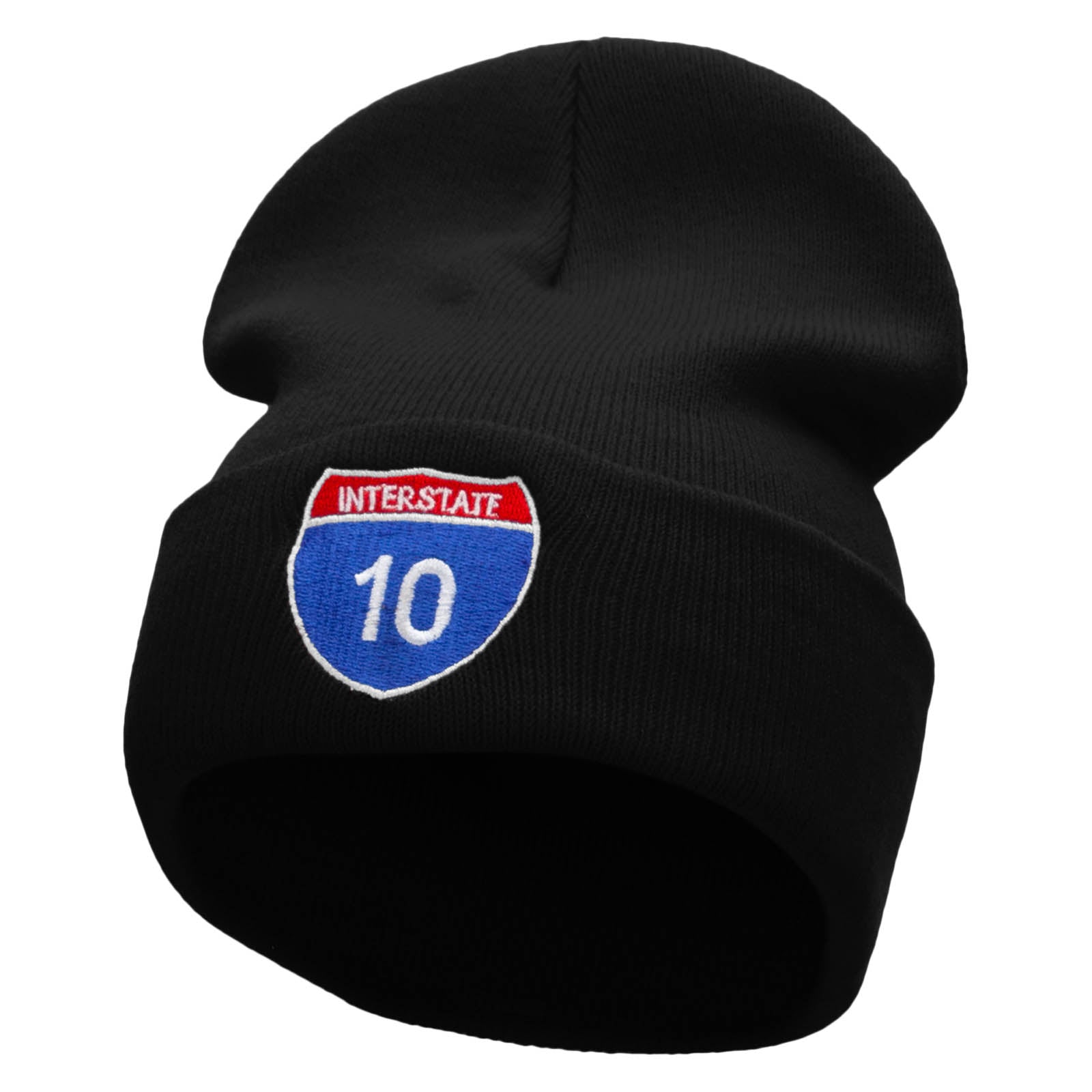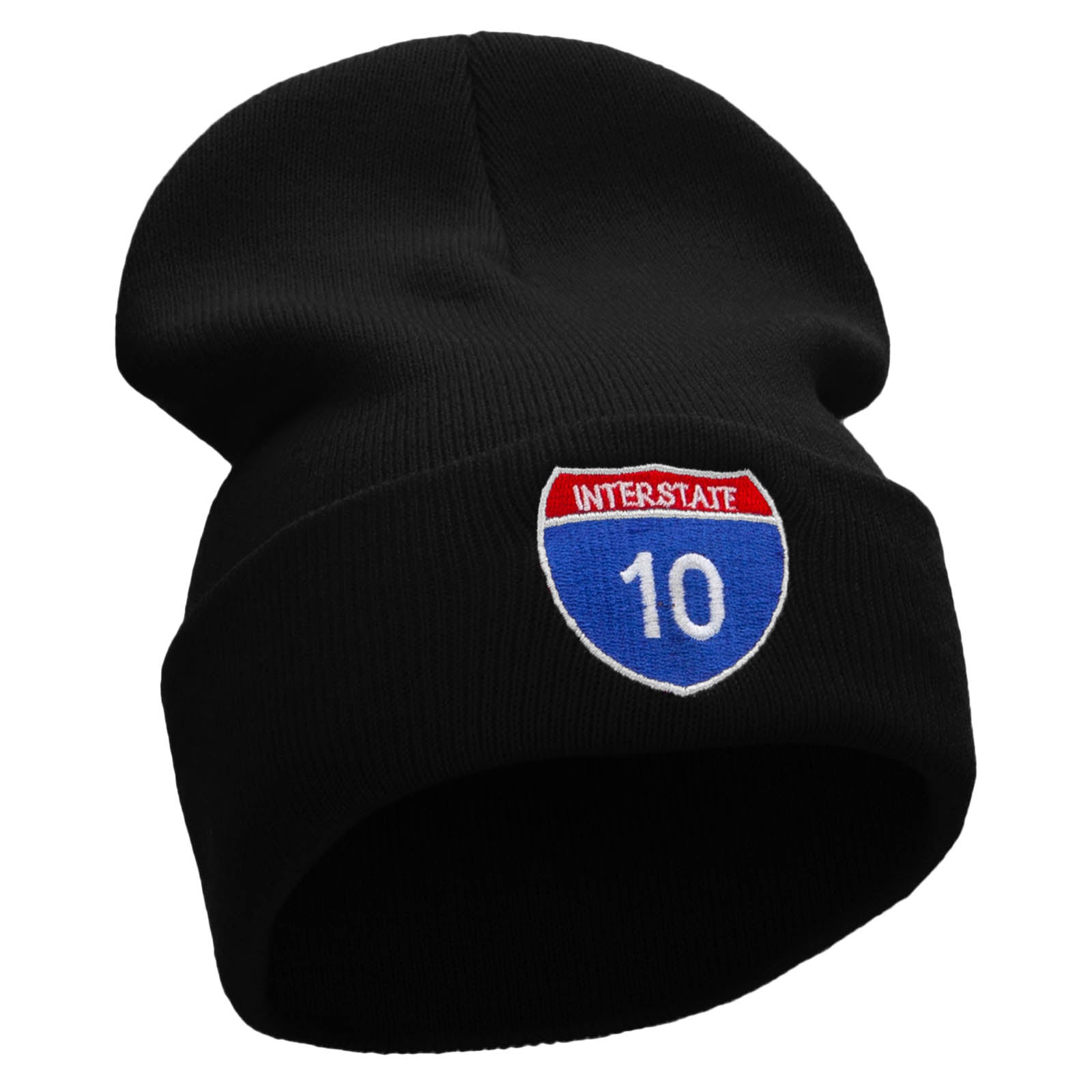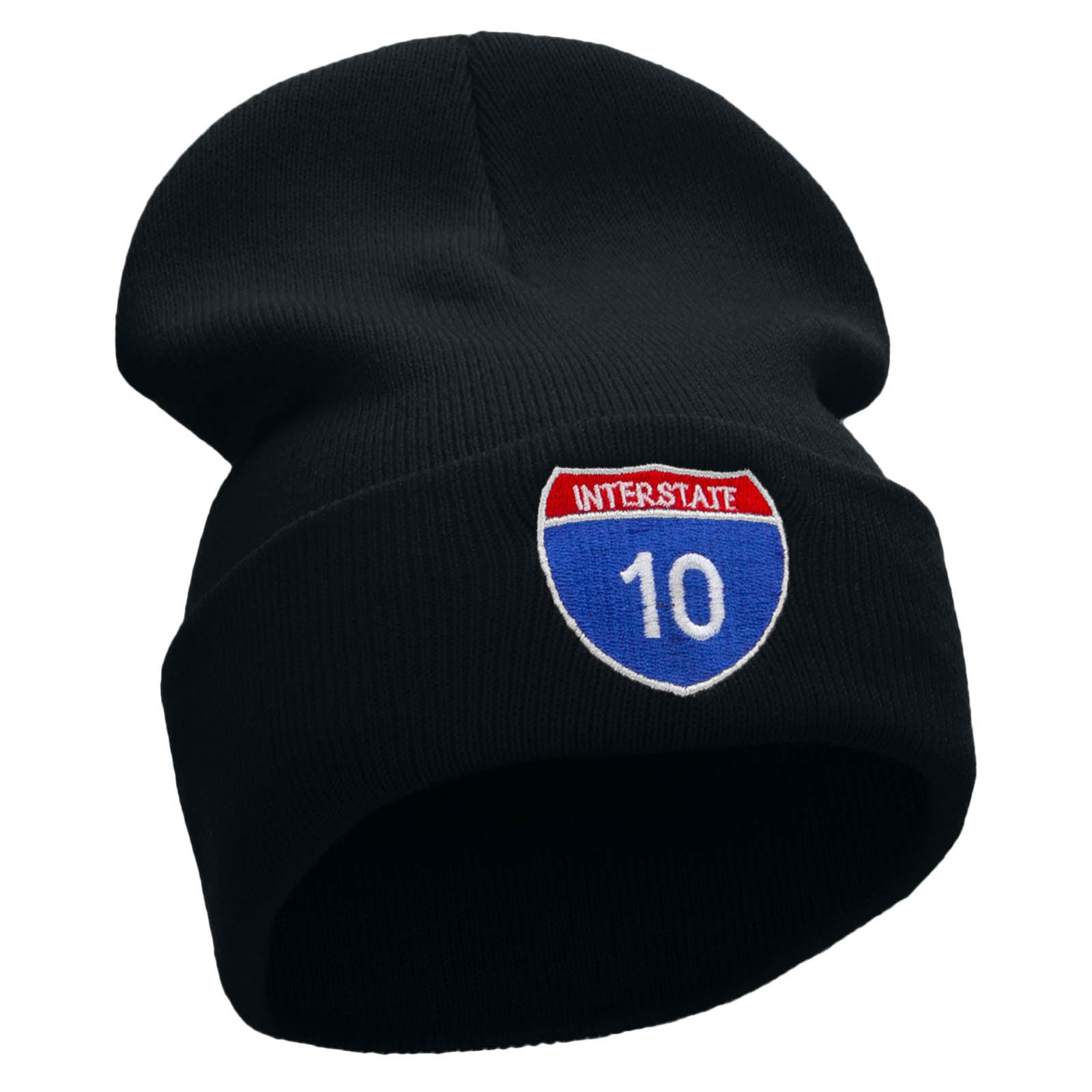 Interstate 10 Sign Embroidered 12 Inch Long Knitted Beanie