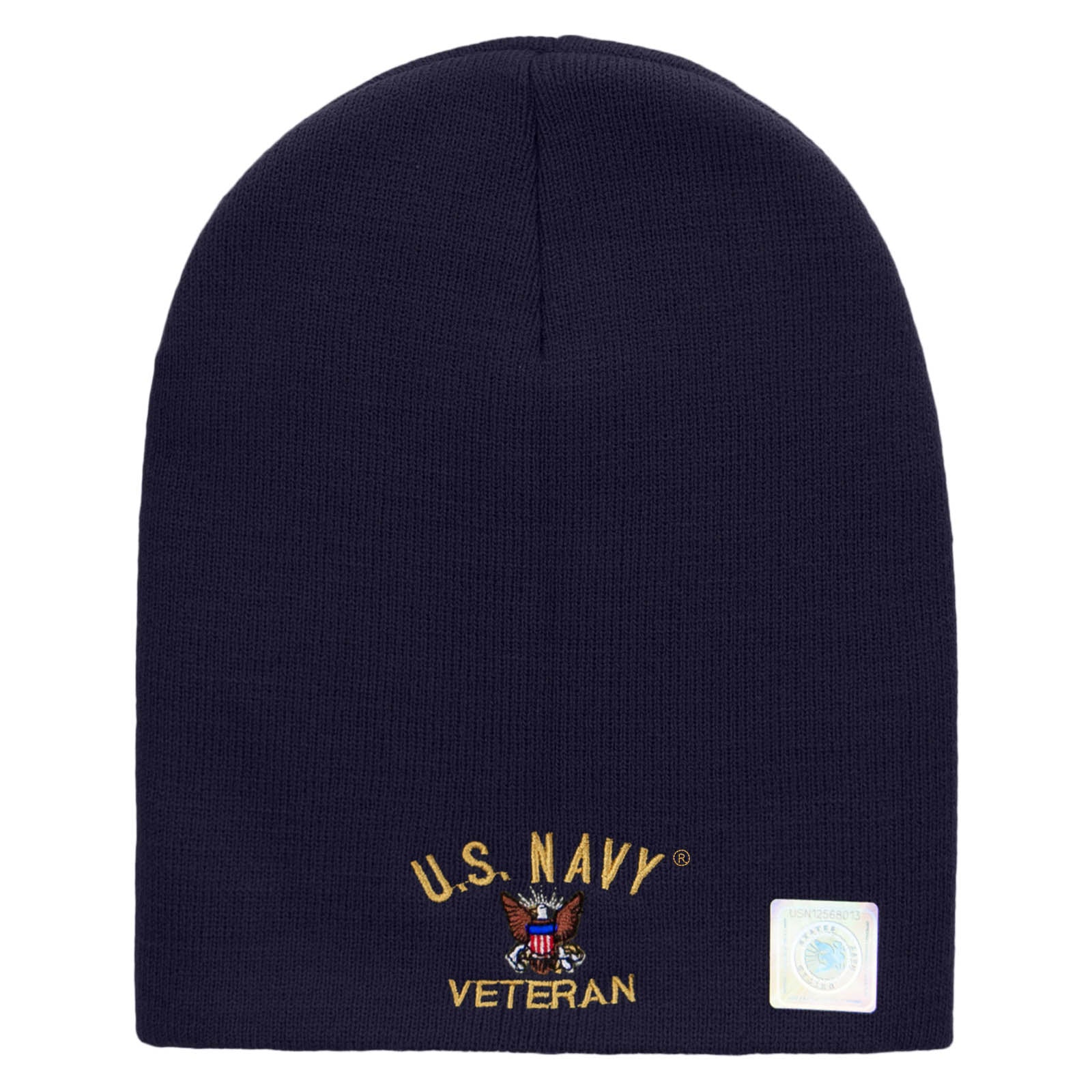 US Navy Veteran Military Embroidered Short Beanie Made in USA